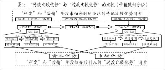 图1 “传统比较优势”与“过渡比较优势”的比较(价值链细分法)